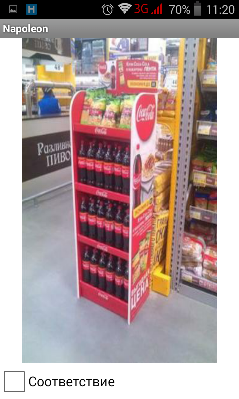 После того как вы выложите товар в соответствии с планограммой. Переходим к следующему пункту «Фото после выкладки» 84 Так же делаем фото, если есть комментарии то пишем в окне. Далее переходим снова к пункту планограмма и если ваша выкладка соответствует планограмме ставим галочку, как указанно, ниже на примере.