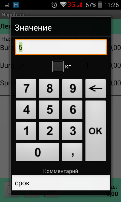 Отмечаем количество товара и единицу измерения